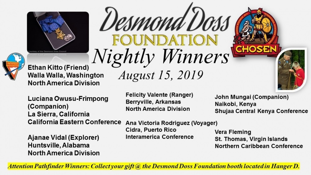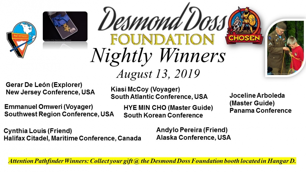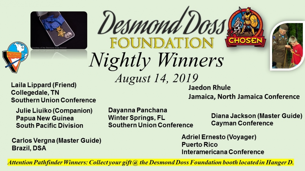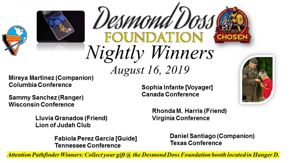 If you are a Winner, please come to the Desmond Doss Foundation Booth in Hangar D to receive your free gift...